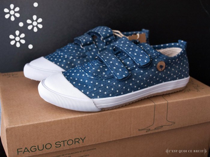 Les gosses, c’est cool, ils sont mignons, ils ont de jolis petits petons (t’as vu ça rime !) mais quand ils te prennent 2 pointures en moins d’une saison, ça fait mal ! C’est donc avec un grand bonheur que j’ai accueilli la jolie paire de chaussures Faguo que j’ai reçue pour Miss L il y a quelques semaines.